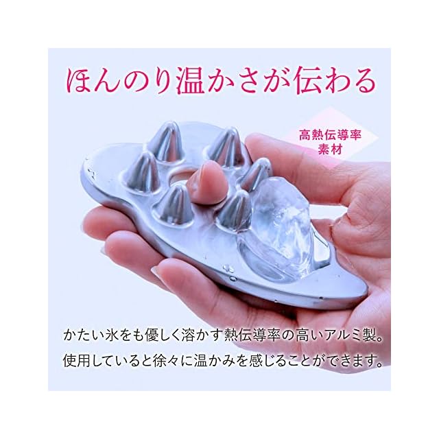体温がほのかに伝わる熱伝導素材できた頭皮マッサージ用かっさプレート。頭皮・耳まわりを優しくほぐします。