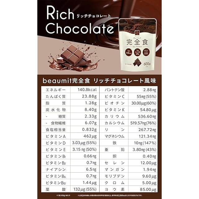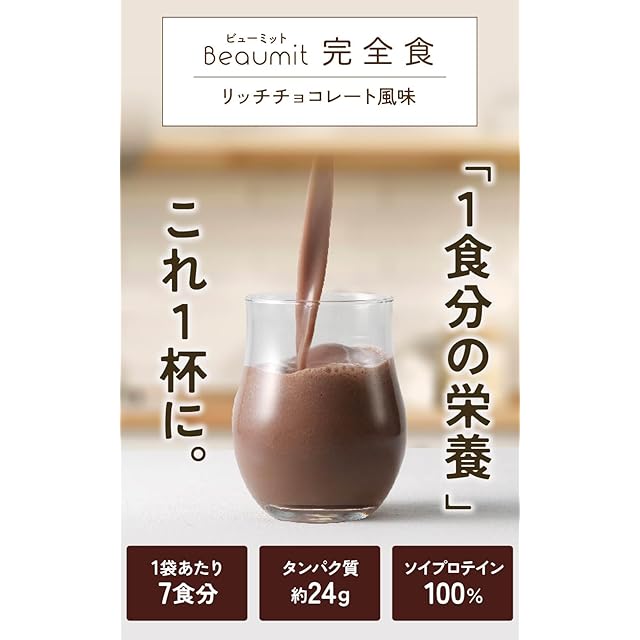 【 国際中】Beaumit 完全食 ソイプロテイン 完全栄養食 たんぱく質24g ダイエット 置き換えダイエット チョコレート味 国際中 人工甘味料不使用 140kcal 栄養機能食品 国内製造 ビタミン13種類 ミネラル12種類 (7食分, チョコレート)