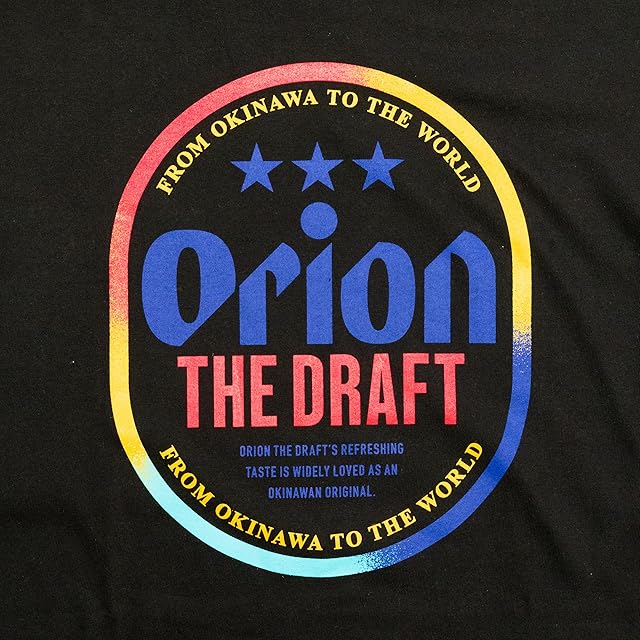 商品名:オリオン tシャツ オリオンビール オリオンtシャツ ブラック コットン 綿 ユニセックス 正規品 ご当地 沖縄 ロゴ 4色カラー 輪 オリジナルステッカー付き (JP, アルファベット, S, ブラック)