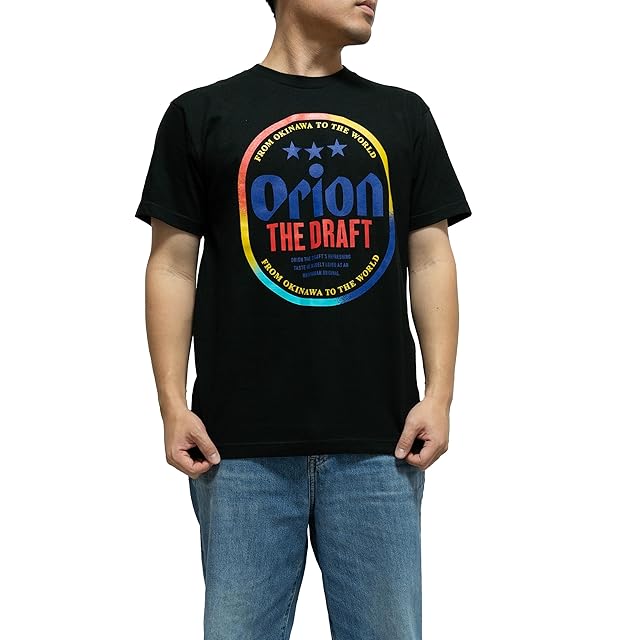 商品名:オリオン tシャツ オリオンビール オリオンtシャツ ブラック コットン 綿 ユニセックス 正規品 ご当地 沖縄 ロゴ 4色カラー 輪 オリジナルステッカー付 (JP, アルファベット, 3XL, ブラック)