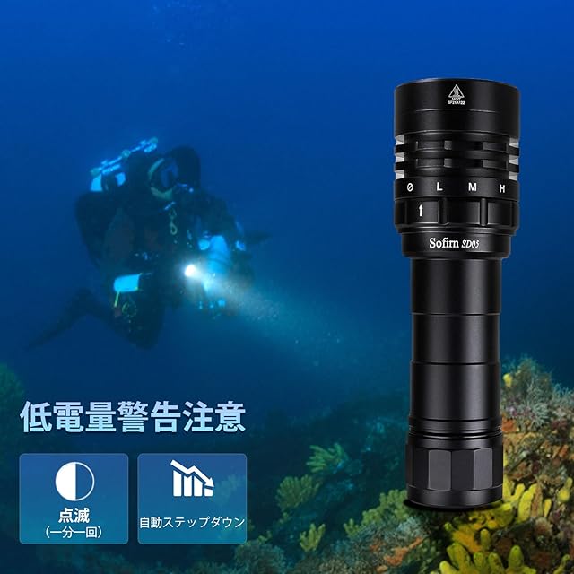 商品名:Sofirn ダイビングライト 3000ルーメン 水中100メートル マグネットリング スイッチ 三つ点灯モード 超高輝度 LED 懐中電灯 耐衝撃 探検 ナイトダイビング 水中ライト 釣り キャンプ 防災グッズ 日本語説明書付属
