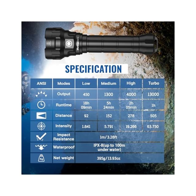 Wurkkos ダイビングライト DL70 LED 懐中電灯 防水 13000LM ダイビング 懐中電灯 XHP50.2 LED×4採用 水中ライト 水中100Mまで使用可能 防災グッズ 魚突き 釣り キャンプ 登山 アウトドア ハンディライト