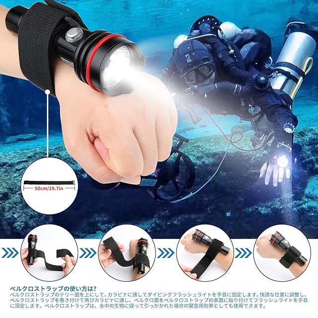 強度と耐久性: 高強度シェル、耐塩水腐食、耐スクラッチ、耐摩耗コーティング、1.5m落下防止能力により、最も過酷な環境でもこのダイビング懐中電灯を信頼できます