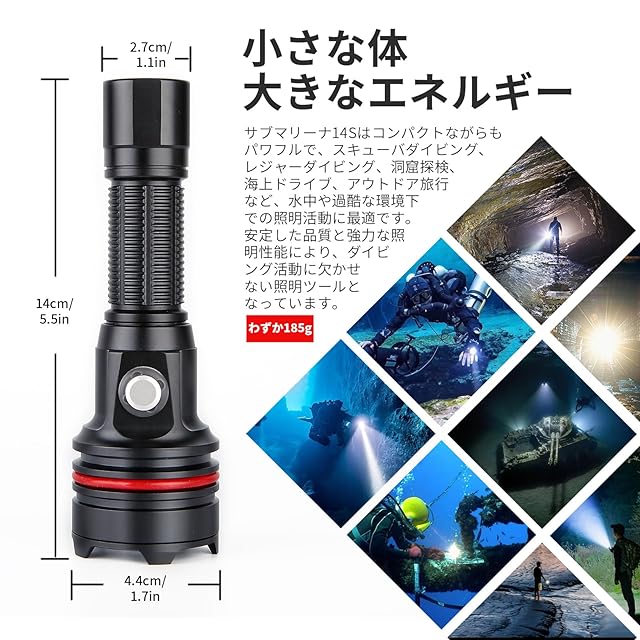 プロフェッショナルダイビングギア: SM-14Sダイブライトは、スキューバダイビング、洞窟探検、水中スポーツに最適なツールです