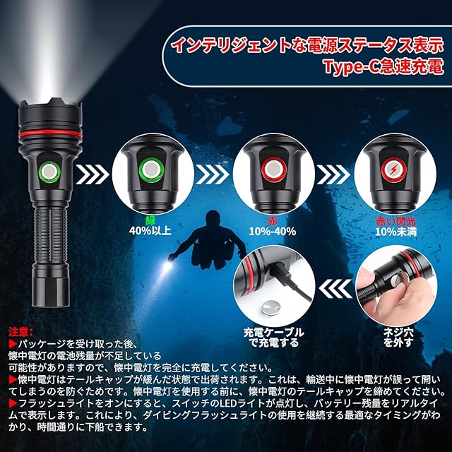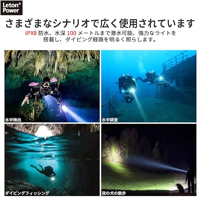 商品名:LetonPower SM-14S ダイビングライト、2000Lumens 水中ライト,100mダイビング ライト, タイプC充電 ダイビング 水中ライト、スポットライトロングショットダイビング ライト