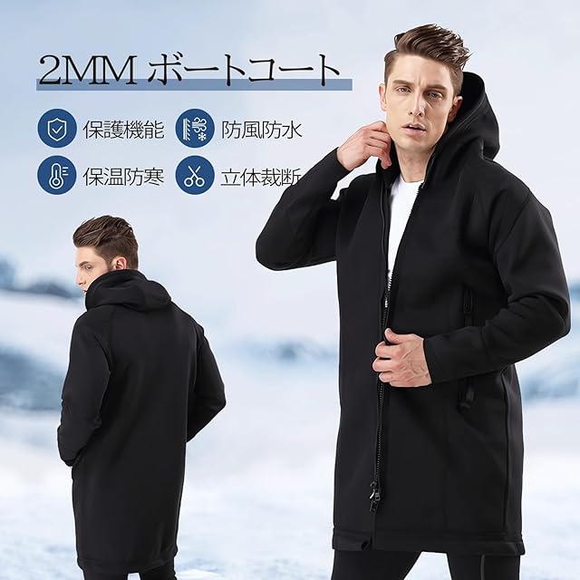 商品名:MORGEN SKY 2mm ボートコート ダイビング ジャケット ウェットスーツ メンズ マリンコート ネオプレン フード付き 釣り アウター 防寒 防風 ウィンドブレーカー マウンテン パーカー MY105 (S, 黒)