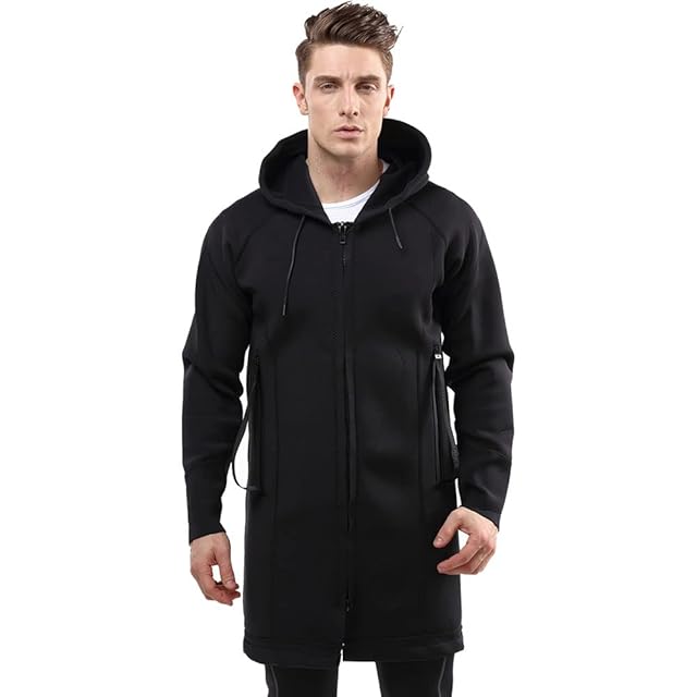 MORGEN SKY 2mm ボートコート ダイビング ジャケット ウェットスーツ メンズ マリンコート ネオプレン フード付き 釣り アウター 防寒 防風 ウィンドブレーカー マウンテン パーカー MY105 (S, 黒)