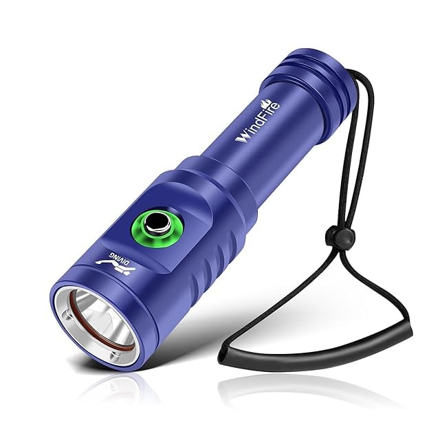 WINDFIRE TS08 ダイビングライト、 5000ルーメン ナイトダイビング、三つ点灯モード 、潜り使用 LED水中ライト、水中60Mまで使用可能、水肺懐中電灯、電力量表示、水中探検/撮影 夜間潜水 魚突き 釣り キャンプ 登山に適している(青)