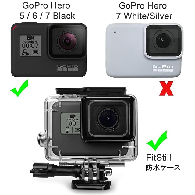 商品名:FitStill 60M/196フィート 防水 水中ハウジング ダイビングキット Go Pro Hero 7/6/5/2018用 ダイビングフィルター3個とフローティングハンドル付き Go Pro Hero 7/6/5/2018 ブラック アクセサリー ダイビングキット