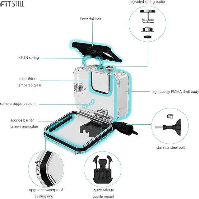 商品名:FitStill 60M/196FT 水中防水保護ケースGo Pro hero 8 black対応 3パックダイブフィルター付き 一脚フローティングハンドグリップ 自撮り棒 Go Pro hero 8 ブラックアクセサリーキット