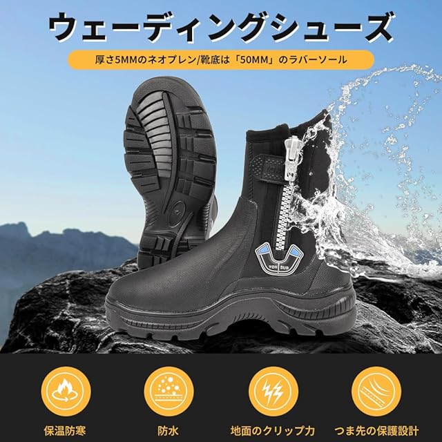 商品名:[MORGEN SKY] ウェーディングシューズ 磯靴 5mm フィッシング ブーツ ダイビング マリンシューズ 保温防寒 防水 厚底 滑り止め 水陸両用 男女兼用 磯釣り 渓流 釣り 岩場 YZ021 (ブラック, 25.5cm)