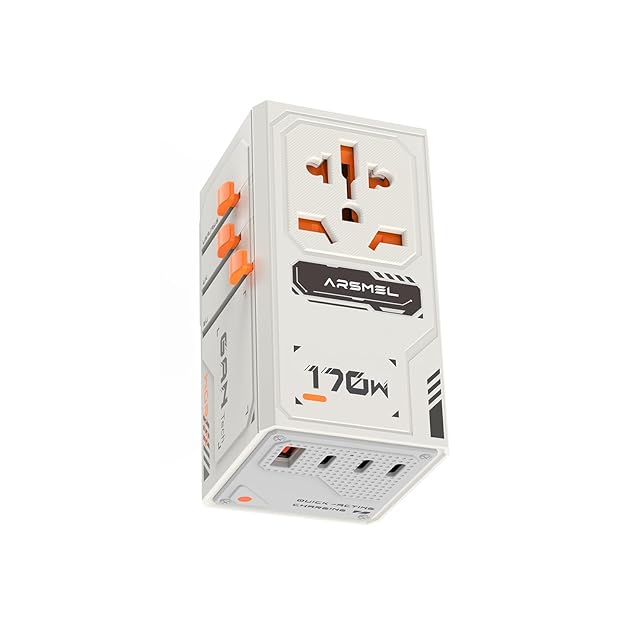 <b>【5台同時に急速充電|最大170W GaN対応】</b><br> ACコンセント+USB-C×3+USB-A×1を搭載し、スマホ・タブレット・ノートPCなど5台のデバイスを同時に充電可能。GaN(窒化ガリウム)テクノロジーにより、発熱を抑えつつ高出力を実現。<br><br> <b>【USB-C単ポート最大140W出力|MacBook Pro 16”対応】</b><br> 高出力が必要なノートパソコンにも対応。USB-Cポートは単体で最大140Wに対応し、MacBook Pro 16インチもフルスピードで充電可能。最新PD3.1にも対応。<br><br> <b>【世界200以上の国と地域に対応】</b><br> ヨーロッパ・アメリカ・イギリス・オーストラリア・アジア各国に対応する多機能プラグを搭載。100-250Vの電圧に対応しているため、旅先でも安心。<br><br> <b>【これ1つでどこでもOK|旅行・出張・日常使いに】</b><br> これまでのように複数の充電器を持ち運ぶ必要はありません。自宅でもカフェでも、これ一台で全てのデバイスをまとめて充電可能。旅行だけでなく日常使いにも最適。<br><br> <b>【手のひらサイズのコンパクト設計】</b><br> 軽量でミニマルなサイズ感。バッグやスーツケースの隙間にスッと収まり、持ち運びラクラク。<br><br> <b>【洗練されたメカスタイルデザイン】</b><br> 近未来感のあるメカニカルデザインを採用。高級感のある質感と、ガジェット好きに刺さるデザイン性が魅力です。<br><br> <b>【マルチ保護機能搭載|高い安全性】</b><br> 以下の保護機能を備え、安全性も万全:<br> ✅ 過電流保護<br> ✅ 過熱保護<br> ✅ 短絡保護<br> ✅ 難燃性素材採用<br> ✅ 10Aダブルヒューズ内蔵<br> ✅ チャイルドプロテクション機構<br> ✅ 各種国際安全規格に準拠<br><br> <b>【プラグ変換もスムーズ操作】</b><br> 直感的なプッシュ&スライド操作で、プラグ変換が簡単に。各国仕様にすばやく切替可能。<br><br> <b>【荷物もコストもミニマルに】</b><br> 充電器の数を減らして、荷物もスリム化。複数ポートとプラグ変換が一体化しているので、追加購入の手間や出費も削減できます。<br><br> <b>VisaProで、旅行も日常もスマートに。</b><br> 海外でも国内でも、これひとつで充電の悩みから解放。あなたの旅と毎日をもっと快適にする、次世代型トラベルアダプターです。<br>