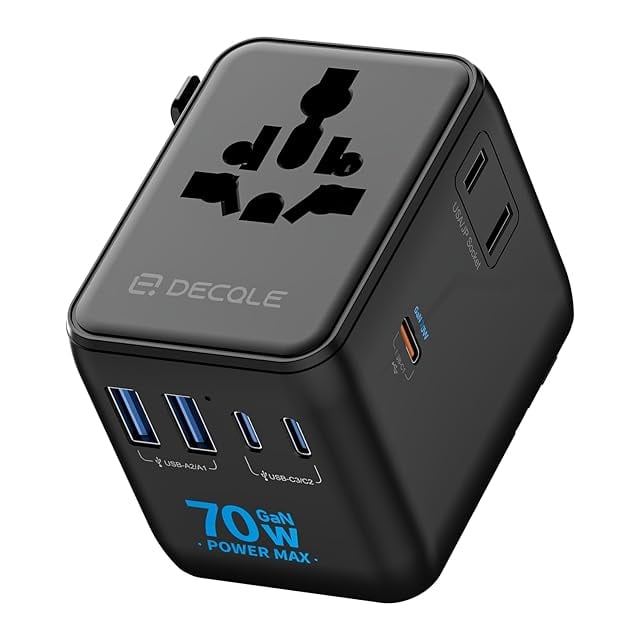 商品名:decqle 海外 変換プラグ 全世界対応 コンセントマルチ変換プラグ 3 USB-C & 2 USB-Aポート 70W ACアダプター(アメリカ/イギリス/韓国/ヨーロッパ/オーストラリア/中国などの224+国々に対応)黒い JP