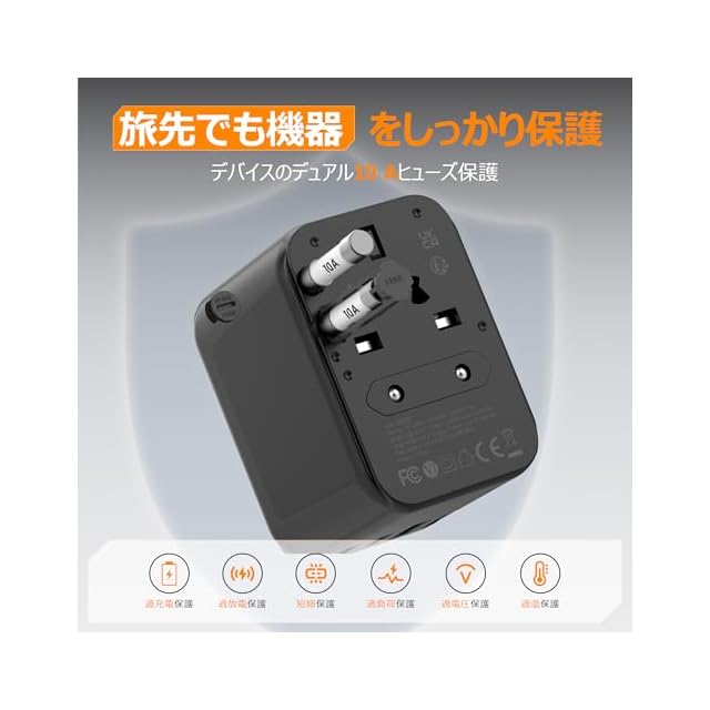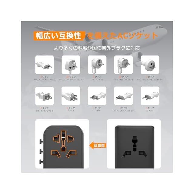【使用者へのご注意】本製品には電圧変換機能はなく、プラグ形状の変換のみ対応しています。ご利用の際は、必ずお使いの電化製品の対応電圧をご確認ください。「100-240V対応」と記載されている電化製品は、そのまま現地のコンセントに差してお使いいただけます。一方、ヘアドライヤーなど日本国内専用(AC100V)の電化製品を海外で使用する場合は、別途変圧器を併用してください。※誠に恐れ入りますが、本製品は海外での使用を目指して設計された海外専用変換プラグです。日本国内ではご使用いただけませんので、あらかじめご了承ください。