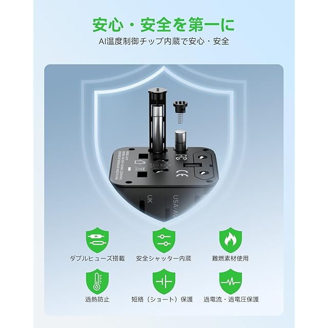 【安全な設計で安心にお使いいただけます】MOMAXのマルチ変換プラグはROHS、CEおよびFCC認証済みです。マルチ保護機能搭載(過熱、過電流、過充電、短絡防止、過電力保護、過電圧保護、過放電保護)また10Aヒューズが内蔵されてありますので、使用中の安全性を保障します。