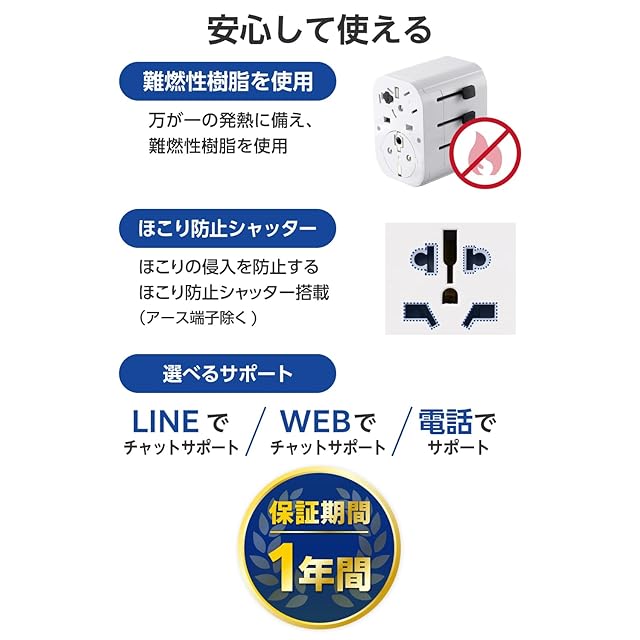 日本のACプラグを海外の形状に変換できる、USBポート搭載マルチ変換アダプターです。
