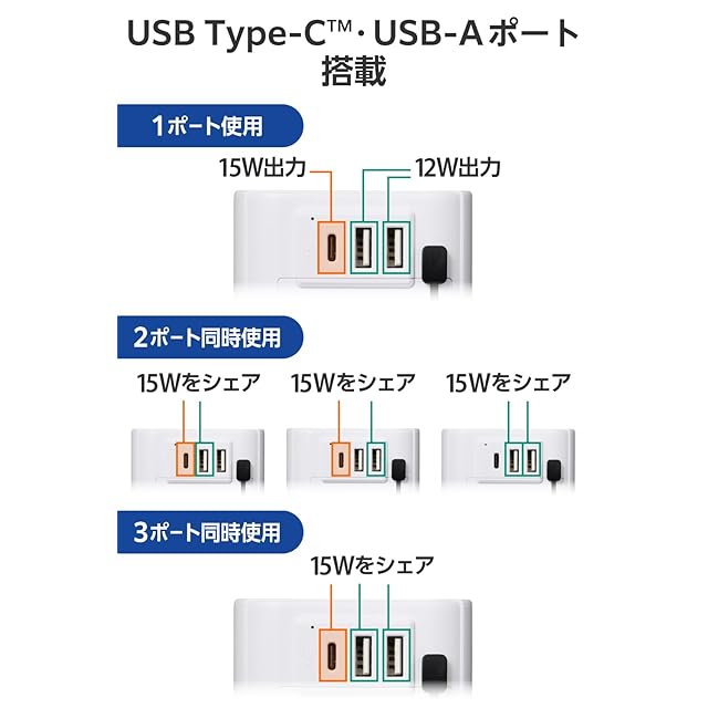商品タイプ:2)USB-A×2/C×1
