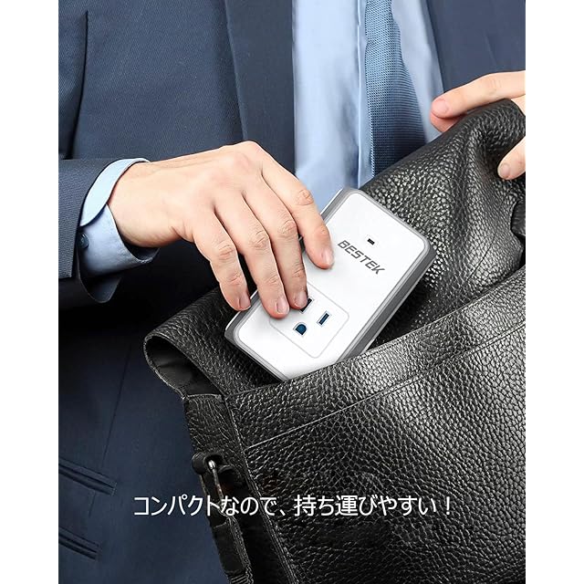 <br>製品仕様<br><br>サイズ:幅115mm×奥行70mm×高さ45mm<br>本体重量:約258g<br>本体素材:PC<br><br>入力電圧:100~240VAC 50/60Hz<br>出力電 圧:100VAC<br>定格消費電力:150W<br>消費電力:180Wmax<br>付属品:取扱説明書(書付き)x1 <br>原産地:中国<br>期間:ご購入日から一年間<br><br>LED表示:<br>緑点灯(ACコンセントとUSBポートは正常稼働です)<br>赤点灯:過負荷、過熱、短絡によりACコンセントは保護状態になります。<br>消灯(電源切れ、あるいは過負荷又は接続部がゆるくなっておりUSBポートは保護状態になります。)<br><br>注意:<br>※スマホに充電する際、別途USBケーブルが必要です。<br>※Apple端末に充電の際は、Apple端末自体の付属ケーブルをご使用下さい(iPhone/iPad/iPod)。<br>※許容消費電力は150Wなので、使用される電気機器の総合消費電力を150Wに越えないように十分ご注意ください 。