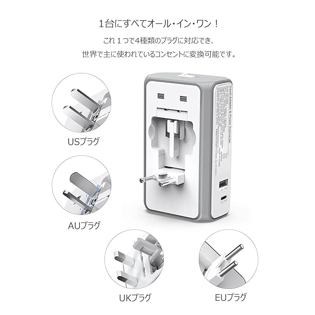 商品名:BESTEK 正弦波 海外旅行用変圧器 150W 5in1セット 海外コンセント 変圧器 変換プラグ 小型 100V-240V to 100V 変換 USB-C ×1口 PD20W USB-A×1口 QC18W ホコリ防止 感電防止 ポータブル 小型 コンパクト MRJ1606-PD