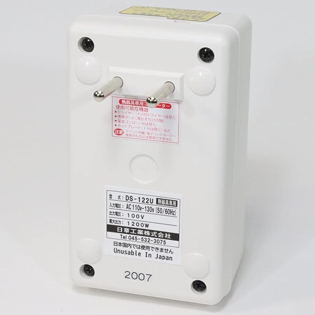 日章工業 変圧器 海外 旅行用 熱器具専用 AC110V~AC130V(50/60Hz)→AC100V 1200W DS-122U ホワイト系