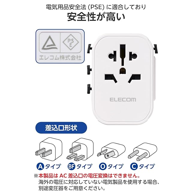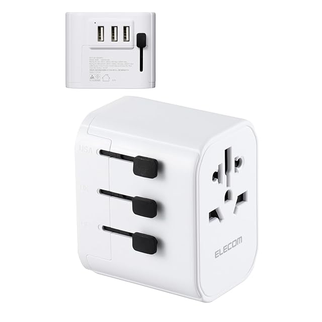商品名:エレコム 海外 変換プラグ A/BF/O/SEタイプ USB-A 3ポート 12W 極性対応 (N極対応) ホワイト ECT-32-15A3WH