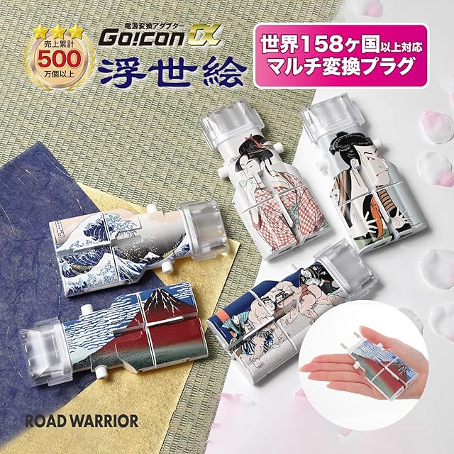 世界158カ国以上の電源コンセントを自在に変換出来るマルチ変換アダプター『ゴーコンα』のバリエーションとして、訪日外国人や海外渡航する際の手土産として、日本の伝統美を象徴する浮世絵をデザインして新登場!単なる実用性を超えて、日本の美と技術を融合させ、より多くの方に日本魅力、日本の伝統文化をお届けします