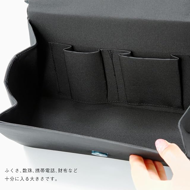 ふくさ、数珠、携帯電話、財布など十分に入る容量です。