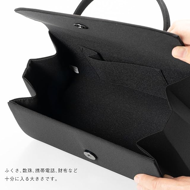 ふくさ、数珠、携帯電話、財布など十分に入る容量です。