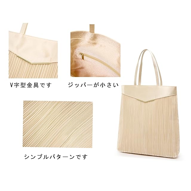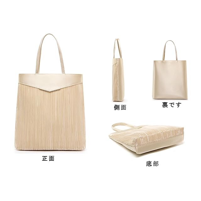 商品名:[SHIMMER] レディース 結婚式 パーティーバッグ レディース大きめ 2セット フォーマルバッグ サブバッグ 結婚式 冠婚葬祭 サテン プリーツ (シャンパン)