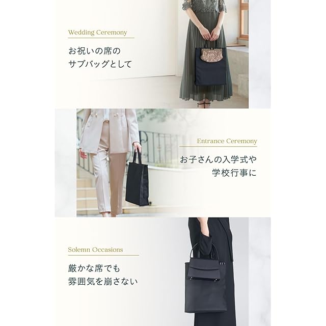 [NEESE] サブバッグ フォーマル a4 縦型 トートバッグ レディース 黒 冠婚葬祭 お受験 入学式 卒業式 結婚式 ブラックフォーマル 撥水 軽量 折りたたみ (c.トートバッグ)