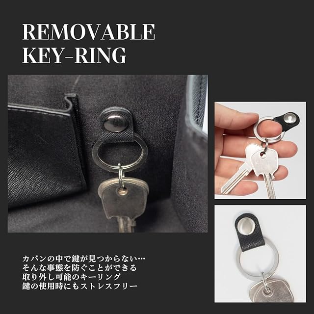 【充実のインナーポケット】 バッグ内部はファスナー付きポケットやスマートフォンも収納可能なマチ付きポケットなど、小物収納スペースが充実。ペンホルダーに取外し可能なキーリングも付属し、使いやすさにこだわりました。機能性とデザイン性を兼ね備えた、大人のための硬派なアイテムです。