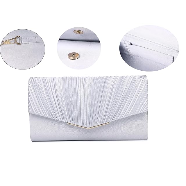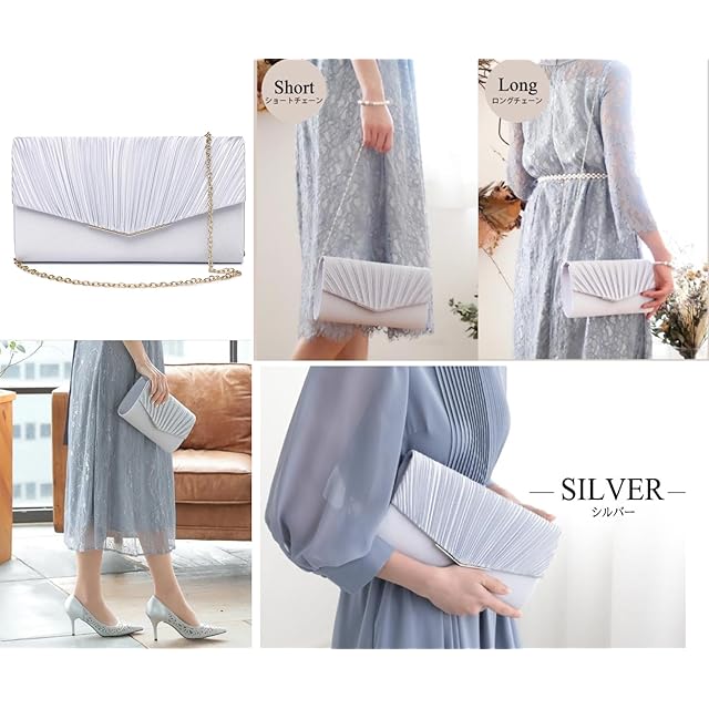 [SUNSPOT] パーティーバッグ クラッチバッグ レディース パーティーバッグ大きめ 結婚式 レディース (シルバー)