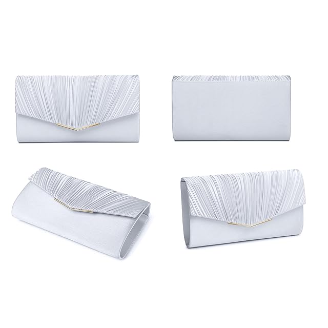 エレガントなデザイン: サテン生地のプリーツが美しいレディースパーティーバッグです。結婚式やパーティーシーンに最適な上品なデザインです。