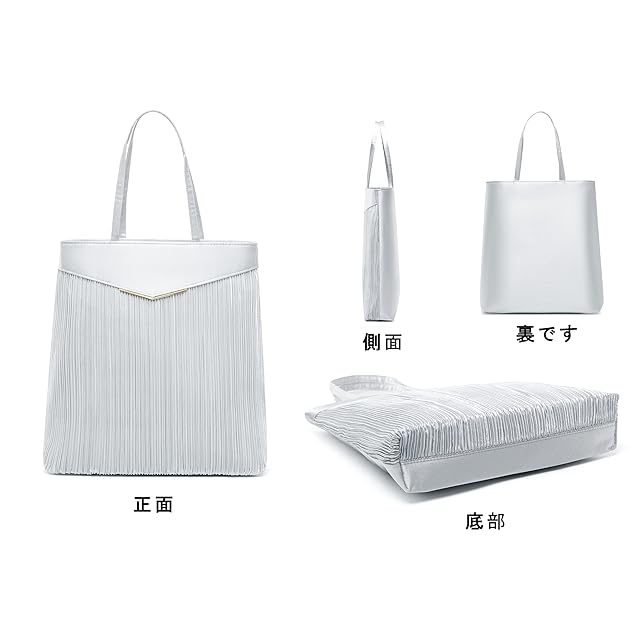商品名:[SHIMMER] レディース 結婚式 パーティーバッグ レディース大きめ 2セット フォーマルバッグ サブバッグ 結婚式 冠婚葬祭 サテン プリーツ (ぎんいろ)