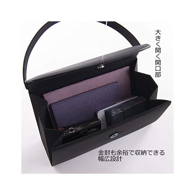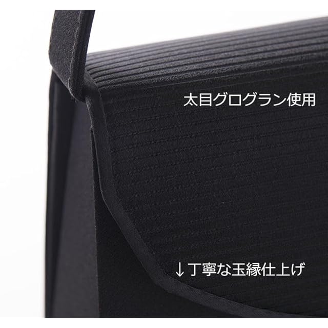 ●特価ご奉仕● レビューが集まるまで限定で破格の特価でご奉仕いたします。販売状況により値上げの方向で検討しております。あらかじめご了承ください 【本商品の特徴】 ・カブセ蓋の生地に太目グログランを使用し、玉縁を施し端正な印象に仕上げました ・最大幅約27cmとワイドでマチも広く、小物の収納が容易です。金封ふくさも余裕で収まります ・内ポケット1カ所(深めのガゼットで意外と使えます) ・背面に浅いポケット付(名刺を挟む程度) 【サイズ】幅最大約27cm 高さ約14cm(手持ち部分除くバック本体部分) マチ最大約7.5cm 【生産国】日本 Made in Japan 国産ハンドメイド 芯材・生地・金具類に至るまで、素材もすべて日本製を使用 【素材】表地:ポリエステル(撥水加工) 裏地:ポリエステル<br><br><br>本体生地に撥水加工済み<br><br> ●フォーマルバッグ用保管箱(別売り)はこちら→ASIN:B073W6BPTF<br>