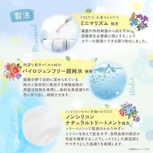 ブリーチなしのヘアカラー用に開発したため、従来のカラーシャンプーよりも高濃度の色素を配合しています。ノンブリーチ毛でもしっかりと色味の変化を実感できます。
