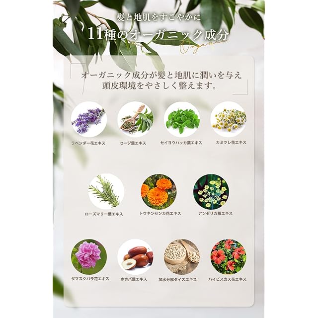 ✅【しっかり】4種類の界面活性剤により頭皮の汚れや皮脂をしっかり洗浄しはもちろん怠りません。11種のオーガニック認証成分でしっかりします。