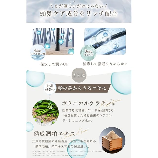 ✅【なめらか しっとり モイスチャータイプ】極上濃密泡で洗いあがりはなめらかでしっとりとするモイスチャータイプです。優しいだけではなく頭髪ケア成分をリッチ配合しておりダメージケア成分配合でパサつきを抑えます。