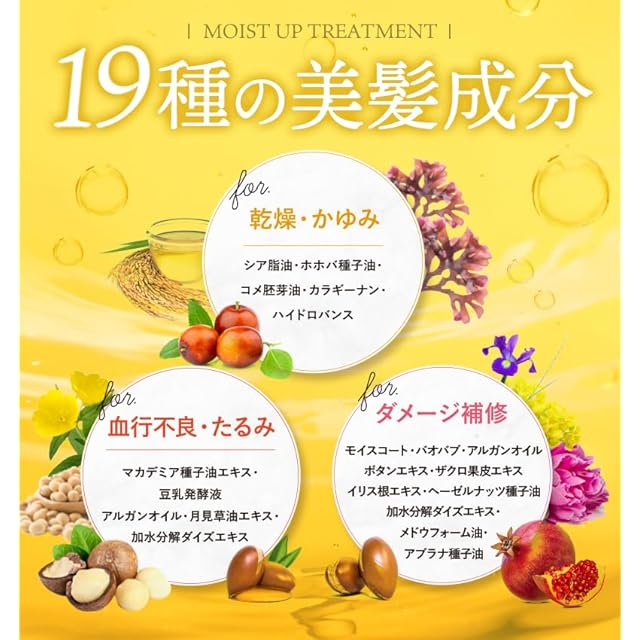 ✨[ 19種の美髪成分を配合 ] シャンプー の成分とも相性抜群の美髪成分をたっぷり配合しました。和漢西洋ハーブエキスなどを贅沢に配合した植物オイルが、みずみずしい 髪 に育てる ヘア トリートメント です。