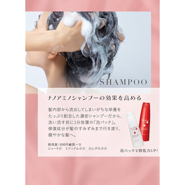 しっとり・やわらかタイプ(ポンプ) ダメージヘアをしっとりとやわらかく、毛先まで潤うツヤやかな美髪へ・・・ ナノ化したアミノ酸系エモリエント成分(CMC類似体)とコラーゲン※1が、髪の内部まで浸透し、ダメージヘアを優しくいたわりながらケア。洗い上がりは驚くほどやわらかくしなやかな美髪へ導きます。 ※1 成分