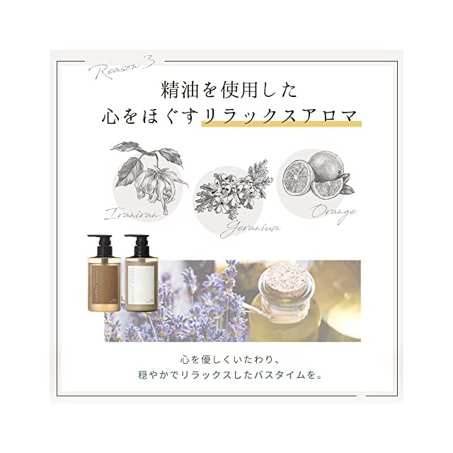 ✅【3種の贅沢な天然精油のブレンド】イランイラン、ゼラニウム、オレンジの3種の精油をブレンドした心地よい香りで、バスタイムがリラックスタイムに。やさしい香りに包まれながら、心地よいバスタイムをお過ごしいただけます。