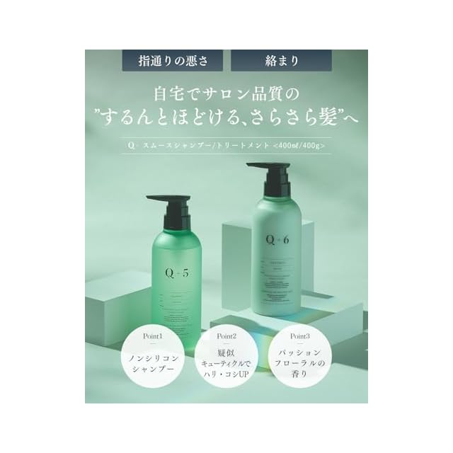 ✨【 サロン品質をご自宅で 】毎日のヘアケアにサロン品質の“クオリティをプラス、Quality + = Q+ ( クオリタス )” ★スムースシャンプー/トリートメント セット ー絡まりを抑え "するんとほどける、さらさら髪 " へー