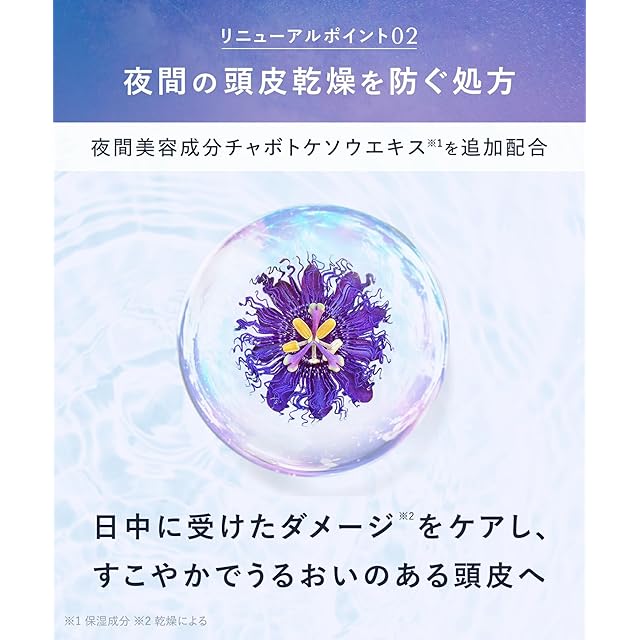 夜間美容で、扱いやすいサラサラ髪へ 髪の内側から毛先まで濃密集中補修[スリークナイトリペア] ナイトケラチン※1 水分バランスを整えうねりケア。CMC類似補修成分※2 蓄積した髪ダメージを補修。睡眠中の摩擦ダメージから髪を守る ナイトキャップセラム※3 髪をコーティングして睡眠中の摩擦を軽減し髪を保護。 地肌に潤いを与える 夜間美容成分配合 チャボトケイソウエキス※4 ネムノキ樹皮エキス※5 ゼニアオイ花エキス※6 安らぎたい夜にペアー&ゼラニウムの香り ※1 ステアルジモニウムヒドロキシプロピル加水分解ケラチン(羊毛)(毛髪補修成分) ※2 ラウロイルグルタミン酸ジ(フィトステリル/オクチルドデシル)(毛髪補修成分) ※3 ポリクオタニウムー61(成分) ※4※5※6 全て成分 パラベン、鉱物油、合成着色料フリー