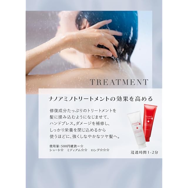 しっとり・やわらかタイプ ダメージヘアをしっとりとやわらかく、毛先まで潤うツヤやかな美髪へ・・・ ナノ化したアミノ酸系エモリエント成分(CMC類似体)とコラーゲン※1が、髪の内部まで浸透し、ダメージヘアを優しくいたわりながらケア。洗い上がりは驚くほどやわらかくしなやかな美髪へ導きます。 ※1 成分