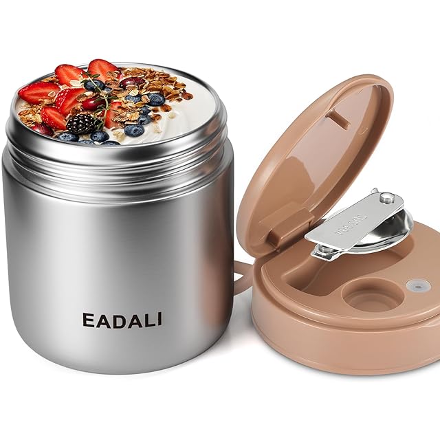 [EADALI]【真空断熱構造】スープジャー 430ml ブラック 子供から大人まで使える 保温保冷 SUS316製 広口設計 食洗機対応モデル 折りたたみスプーン付き お手入れ簡単 弁当箱