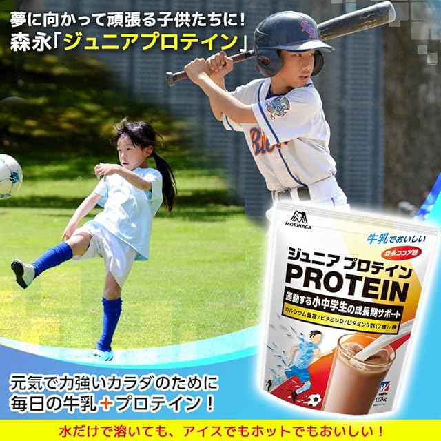 森永製菓 ジュニアプロテイン ココア味 1.12kg ウイダー ソイ ホエイ カルシウム ビタミン 鉄分 合成甘味料不使用 アンチドーピング 国産【Amazon 限定】