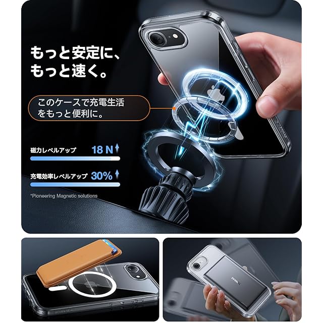 【えっ、こんなに速いの!? ワイヤレスで数分フル充電に!】面倒なケーブルとはさようなら、ワイヤレス充電がもっと楽に!iPhone 16e(用) には革新的な 20W ワイヤレス充電機能が搭載されており、このケースの背面にはハルバッハ特許のマグネット技術が活用されている。高い効率と安定性をし、iPhone (用)が常に十分な電力を保つ。いつでもどこでも便利な 20W ワイヤレス高速充電を手軽に楽しめる!対応機種:iPhone 16e 用 ケース