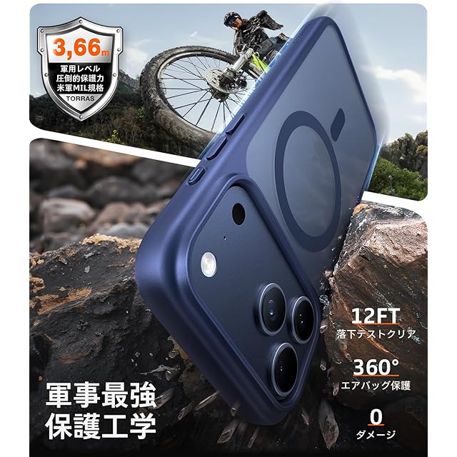 商品名:TORRAS iPhone 17 Pro 用ケース 【米軍進化耐衝撃・高性能Magsafe対応】指紋防止 黄変防止 米軍保護工学 マグネット搭載 衝撃吸収 頑丈 カメラコントロールボタン付き ストラップホール 半透明 Guardian-Mag ブルー