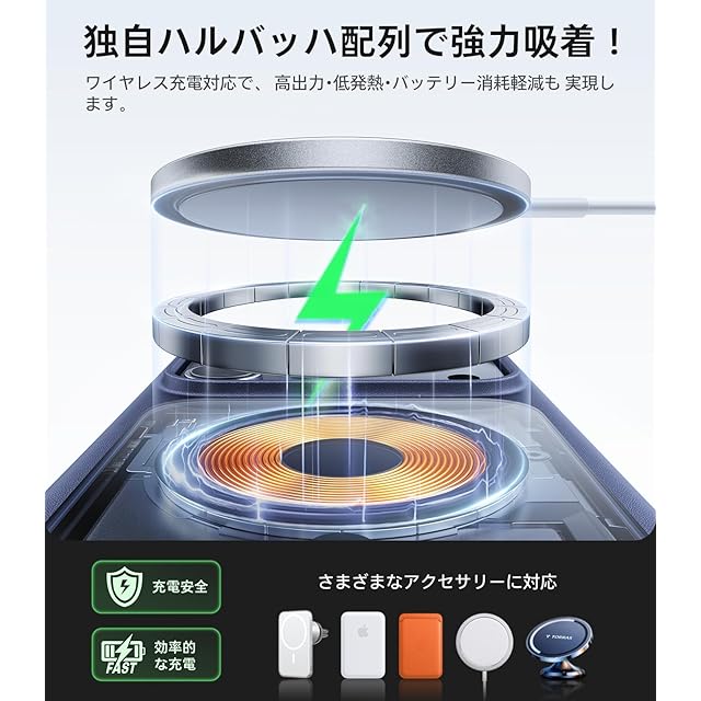 【本当か!特許を取得したマグネット!これこそ驚異的な安定性だ!】36個の高性能N52磁石を採用し、純正MagSafeと同素材で作られています。さらに独自特許のHalbach Array技術により磁石の配置と磁力線の方向を最適化し、純正を超える吸着力を実現。スマホをしっかり固定するだけでなく、充電効率も大幅に向上します。対応機種:For iPhone 17 pro max ケース