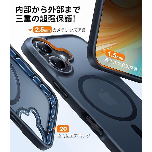 【本当か!特許を取得したマグネット!これこそ驚異的な安定性だ!】TORRASのGuardian Magは、世界累計1100万台販売実績、多くのユーザーの好みの選択肢になっている。最新のGuardian - MagはiPhone 16 に対して、より優れた保護と磁力を提供できる。特許技術に基づくN52マグネットは最適な配列で設計されて、他のケースの磁石より40%も強い。ワイヤレス充電から車載ホルダーまで、幅広いMagSafeアクやセサリーと簡単に互換性がある。また、磁気リングは素材とサイズが携帯に組み込まれた構造に正確に合致して、公式の基準を満たしている。軽く吸着して、瞬時に強力で精密にフィットする。迷わずこのiPhone 16 用のケースを使える。どんな揺れにも強く、しっかり固定されているから、簡単に外れない。iphone 16 ケース